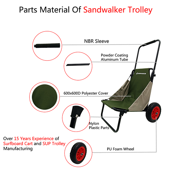 Transportar seu equipamento de esportes aquáticos para a praia é fácil com este carrinho. Seu design espaçoso e construção robusta permitem transportar seu equipamento com facilidade.